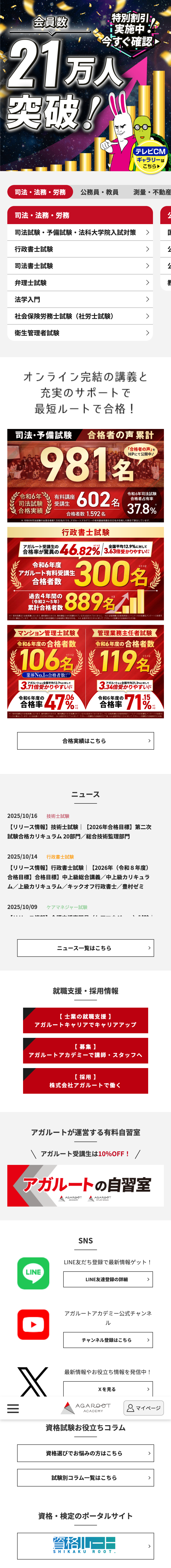 また、アガルート公式ホームページでは、支持率・口コミ・サポート体制において予備校NO.1の評価を受けた旨が報告されています。